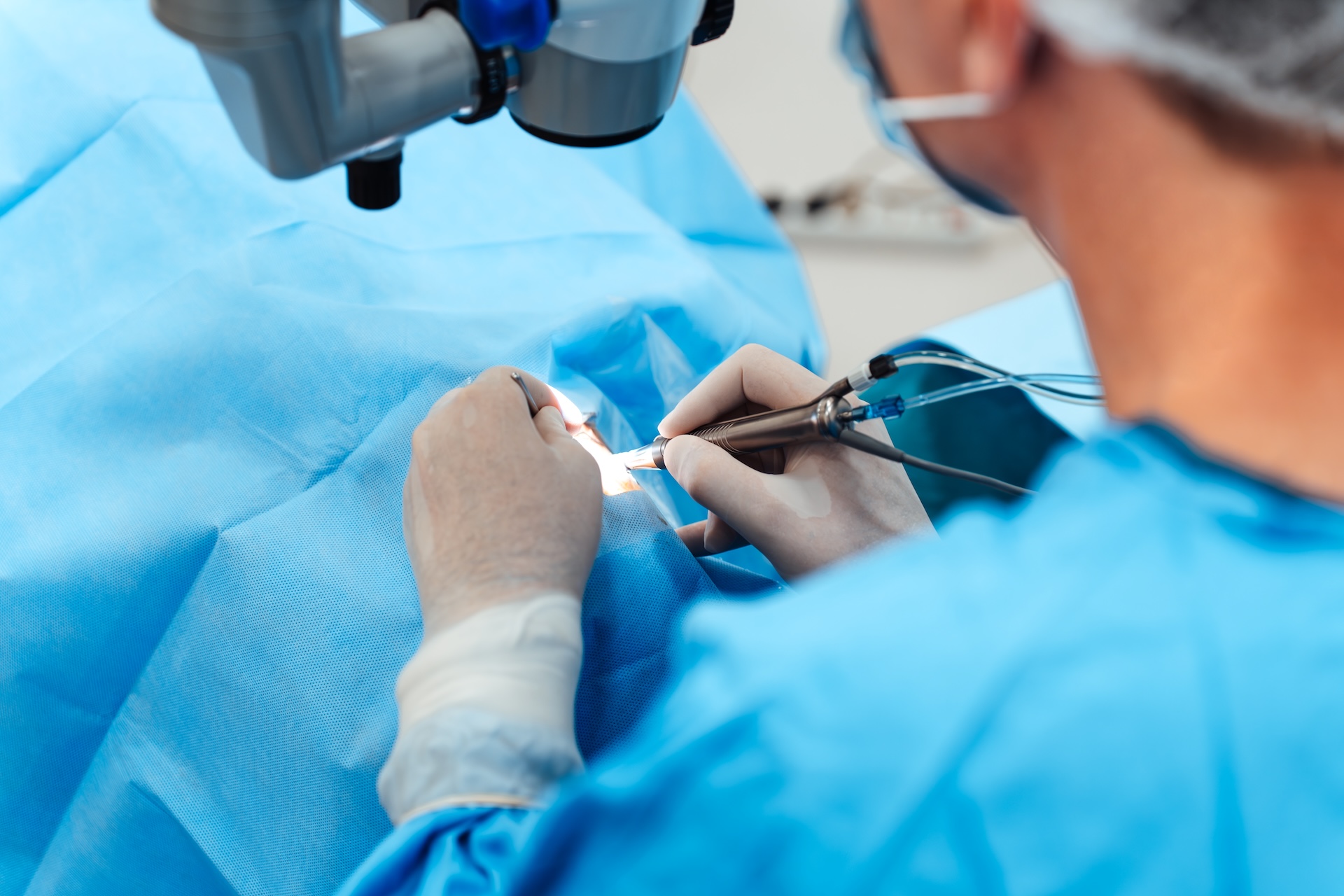- Nacięcie i dostęp do wnętrza oka – chirurg wykonuje mikroskopijne nacięcie rogówki, które nie wymaga szycia i pozwala na wprowadzenie narzędzi.